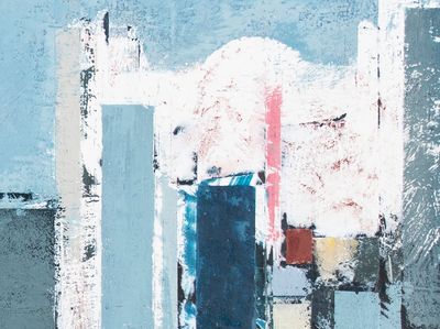 I spent a lot of time living and working in cities around the world. This series of works explores the memories of these places. They are not descriptive of any particular city but aim to stir a sense of knowing. The large blocks of colour sit in contrast to the vague and blurred skyline. There is an opportunity to enjoy the depth of a colour.